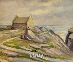 Tableau Ancien Signé Paysage Maritime Bretagne Mer