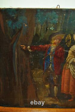 Tableau peinture ancienne 19 siècle XIX scéne galante paysage campagne sous bois